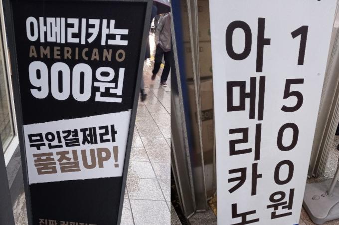 스타벅스 등에 대응하기 위한 소규모 커피점들은 1인 운영, 무인 커피점 등을 도입하면서 커피 한 잔에 2000원, 1500원, 1000원 등으로 떨어뜨려 고객을 부르더니 급기야 아메리카노 한 잔에 900원짜리도 선보였다.