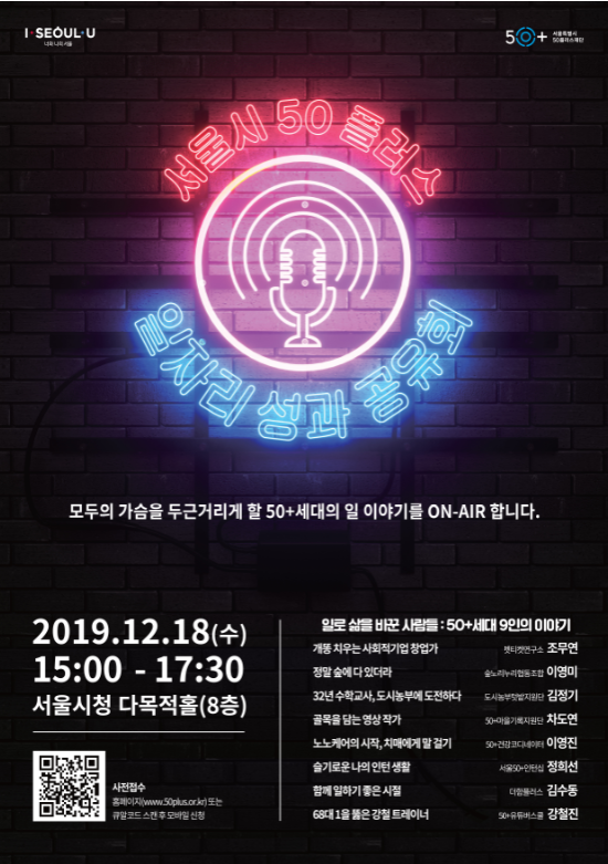 서울시에 따르면 50플러스재단은 올해 사회공헌형 보람 일자리 사업, 중장년층 인턴십, 도시재생 창업 프로젝트 등 49개 사업을 통해 만 50∼64세 대상 일자리 2863개를 만들었다.