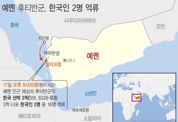 나포됐던 배는 예인선과 항만준설선이며 예멘 카마란섬 인근 해양에서 후티 반군에 의해 나포됐었다. 납치 후 반군 지도자는 "한국 선박이라면 풀어줄 것"이라고 밝힌 바 있다.