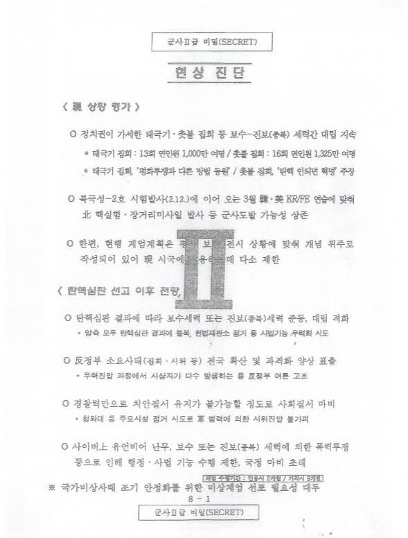 군인권센터는 이날 오전 서울 마포구 군인권센터에서 기자회견을 열어 문건을 공개하고 "계엄을 모의한 세력이 탄핵 심판 결과에 관계없이 19대 대통령 선거를 무산시키고자 한 것"이라고 주장했다.
