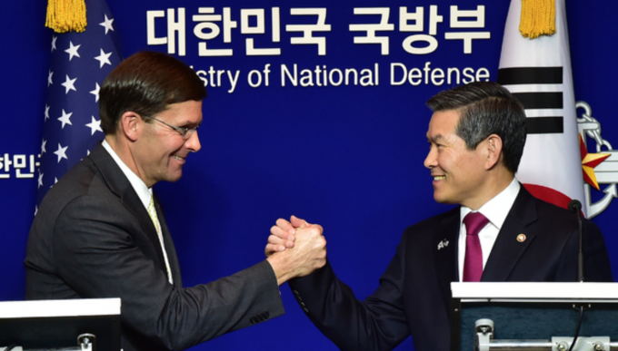 에스퍼 장관이 이날 "며칠 전 공개적으로 말했듯이 한국은 부유한 나라"라며 "그들은 더 많이 기여할 수 있고, 기여해야 한다"면서 한국에 방위비 분담금 증액을 재차 촉구하기도 했다.