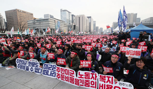 이들은 한반도 평화 실현, 노동·농민·빈민생존권 보장, 재벌체제 청산, 차별·빈곤 철폐, 직접민주주의 확대 등 10대 요구안 실현을 촉구했다.