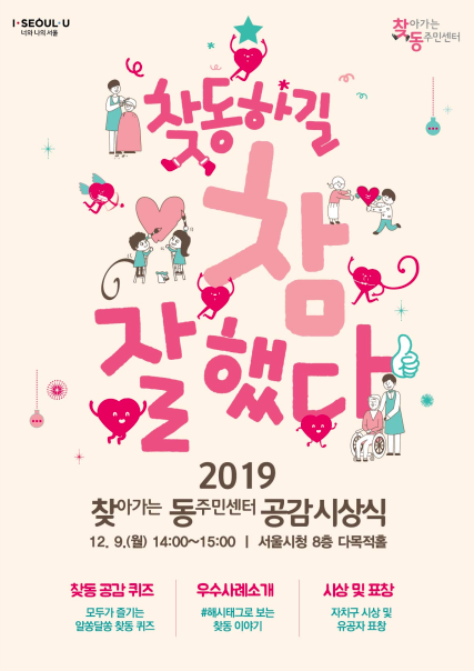 서울시는 이날 오후 2시 시청 본관 다목적홀에서 2019 찾동 공감시상식을 개최한다.