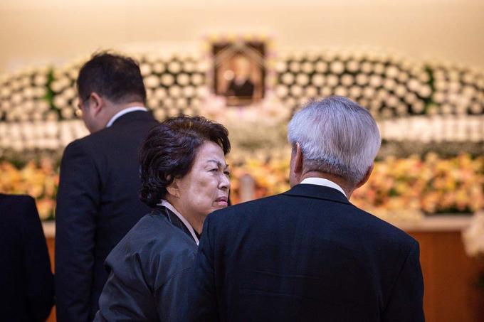 10일 아주대학교병원 장례식장에 마련된 故 김우중 전 대우그룹 회장 빈소에서 김 전 회장 부인인 정희자 전 힐튼호텔 회장이 조문객을 맞이하고 있다.
