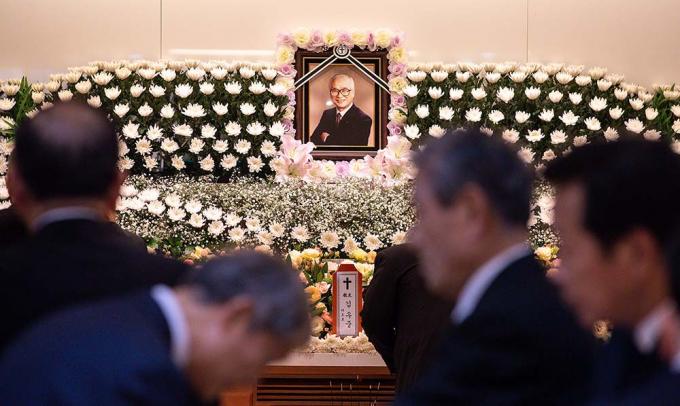 10일 아주대학교병원 장례식장에 마련된 故 김우중 전 대우그룹 회장의 빈소를 찾은 조문객들이 조문을 하고 있다. 故 김우중 전 대우그룹 회장은 지난 9일 오후 11시 50분 숙환으로 별세했다.