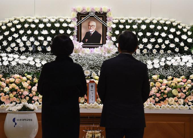 홍석현 중앙홀딩스 회장이 10일 오전 경기 수원시 아주대병원 장례식장에 마련된 고(故) 김우중 전 대우그룹 회장의 빈소를 조문을 하고 있다.
