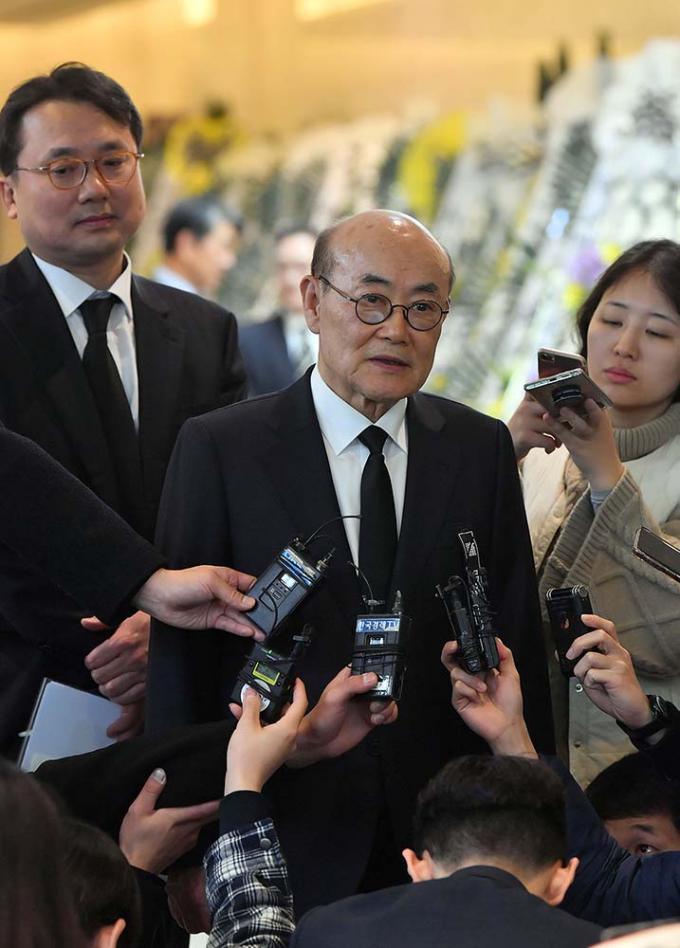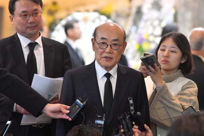 10일 오전 경기 수원시 아주대병원 고(故)김우중 전 대우그룹 회장 장례식장에서 김태구 전 대우자동차 회장이 기자들의 질문에 답변하고 있다.
