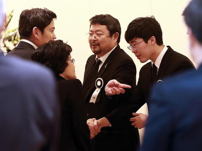 故 김우중 전 대우그룹 회장 빈소 찾은 이명희-정용진