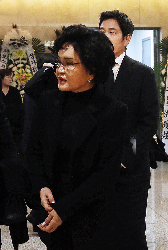 이명희 신세계 회장과 정용진 신세계 부회장이 10일 경기도  수원시 영통구 월드컵로 아주대학교병원 장례식장에 김우중 전 대우그룹 회장의 빈소가 꾸려진 가운데 조문을 하기위해 들어서고 있다.