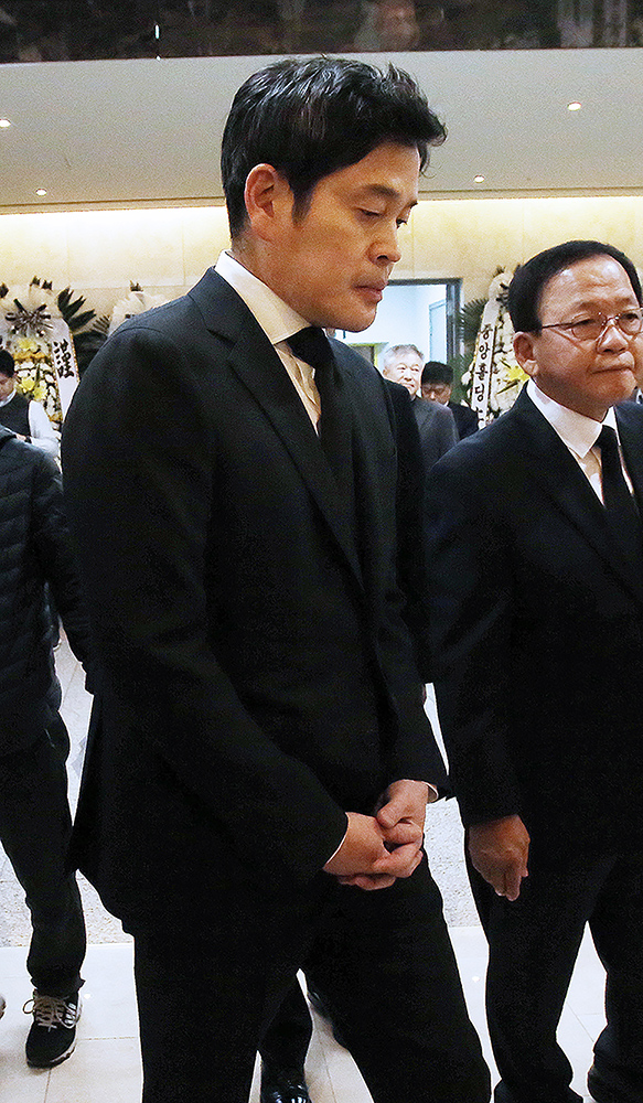 이명희 신세계 회장과 정용진 신세계 부회장이 10일 오후 경기 수원시 아주대병원 장례식장에 마련된 故 김우중 전 대우그룹 회장의 빈소로 향하고 있다.
