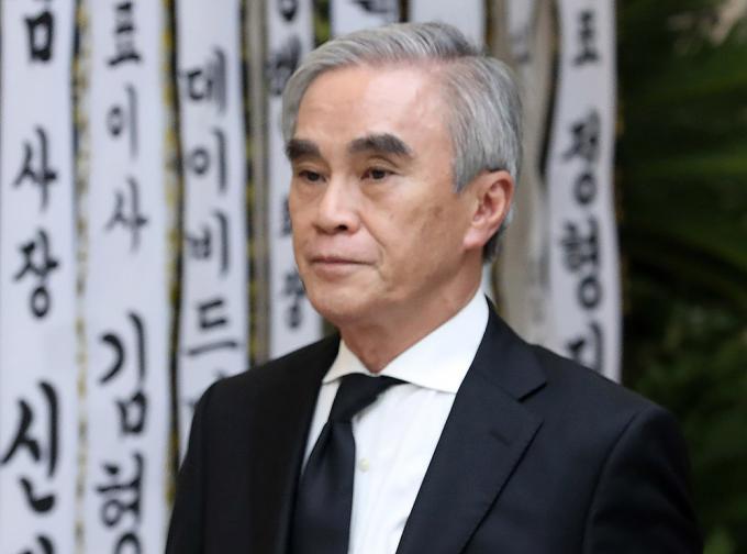 김희근 벽산엔지니어링 회장이 10일 경기도 수원 아주대학교병원 장례식장에 마련된 故 김우중 전 대우그룹 회장의 빈소를 찾아 조문을 마친 뒤, 나서고 있다.