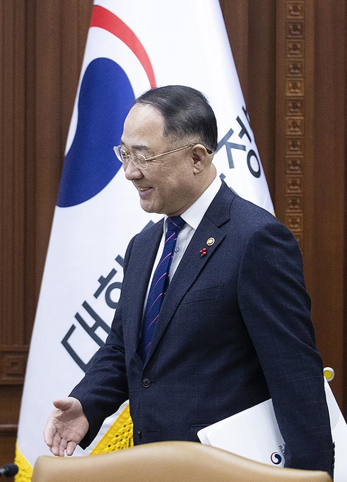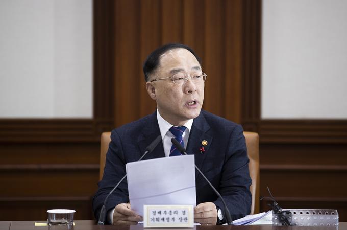 홍남기 경제부총리 겸 기획재정부 장관이 11일 오전 서울 종로구 정부서울청사에서 열린 제27차 경제활력대책회의 겸 제29차 경제관계장관회의에 참석하고 있다.