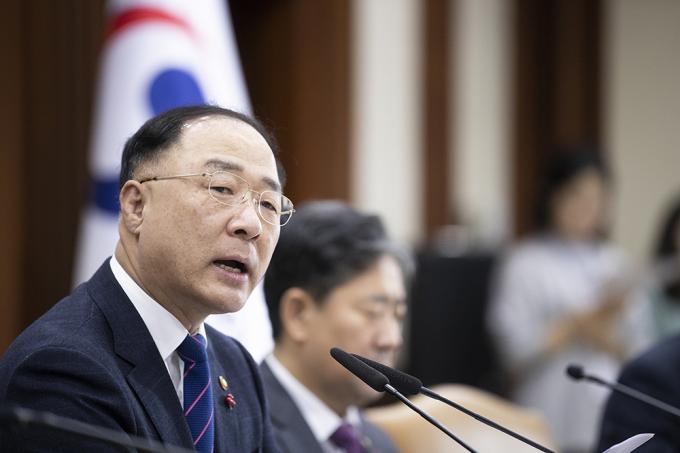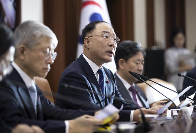 홍남기 경제부총리 겸 기획재정부 장관이 11일 오전 서울 종로구 정부서울청사에서 열린 제27차 경제활력대책회의 겸 제29차 경제관계장관회의에서 모두발언을 하고 있다.