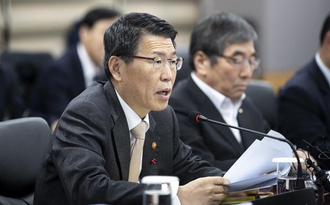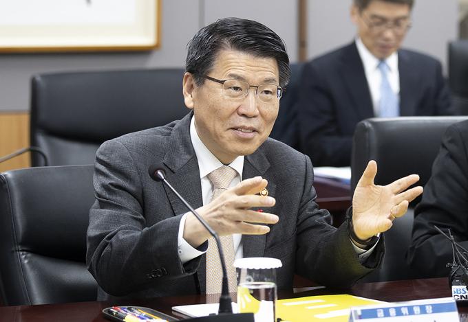 은성수 금융위원장이 16일 오후 정부서울청사에서 열린 주택시장 안정화 방안 관련 금융권 간담회에서 모두발언을 하고 있다.