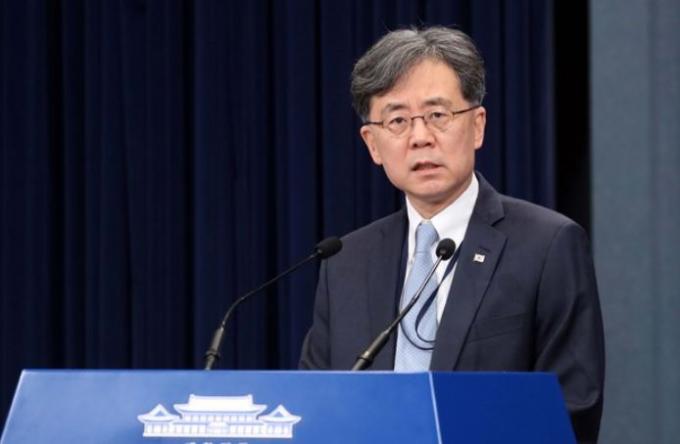 ▲김현종 국가안보실 2차장이 20일 청와대에서 한·일·중 정상회담 관련 브리핑을 하고 있다. [뉴시스]