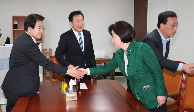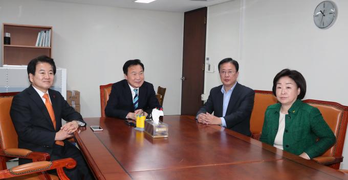 민주평화당 정동영(왼쪽부터), 바른미래당 손학규, 대안신당 유성엽, 정의당 심상정 대표가 23일 오전 서울 여의도 국회에서 회동을 갖고 있다.