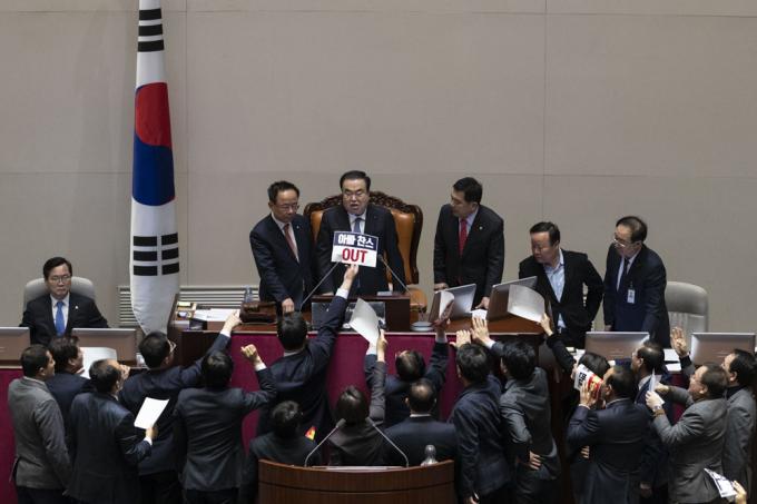 선거법 개정안 상정에 강하게 항의하는 한국당