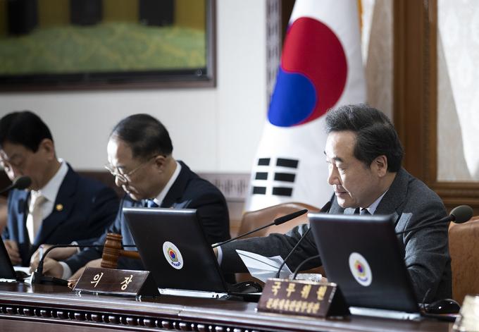이낙연 국무총리가 24일 오전 서울 종로구 정부서울청사에서 열린 국무회의에서 모두발언을 하고 있다. 이날 국무회의에서는 지난 10일 국회를 통과한 2020년도 예산안 512조2505억원을 처리할 예정이다.