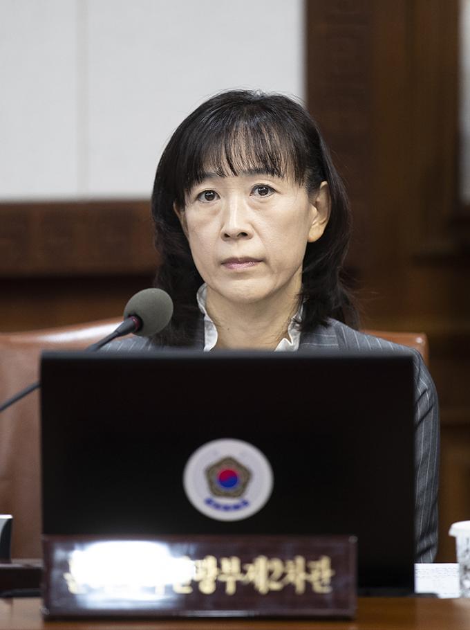 최윤희 문화체육관광부 제2차관이 24일 오전 서울 종로구 정부서울청사에서 열린 국무회의에 참석해있다. 이날 국무회의에서는 지난 10일 국회를 통과한 2020년도 예산안 512조2505억원을 처리할 예정이다.
