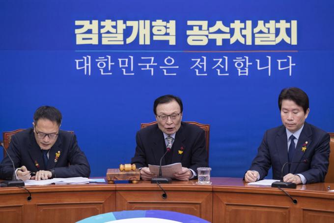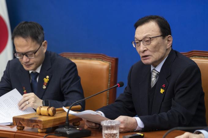 더불어민주당 이해찬 대표(가운데)가 30일 오전 서울 여의도 국회 당대표회의실에서 열린 최고위원회의에서 발언하고 있다.