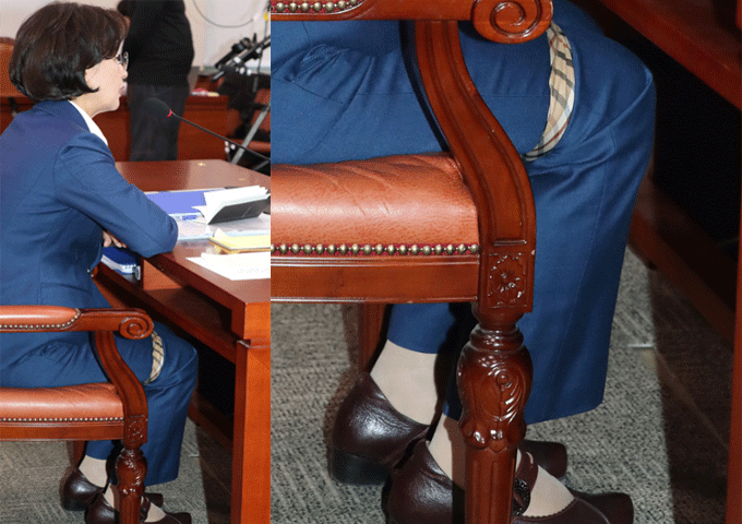 두 다리 손수건으로 질끈 묶고…추미애 인사 청문회