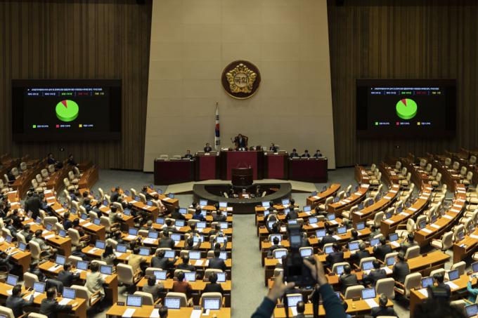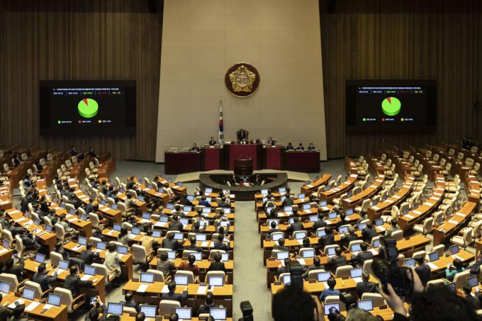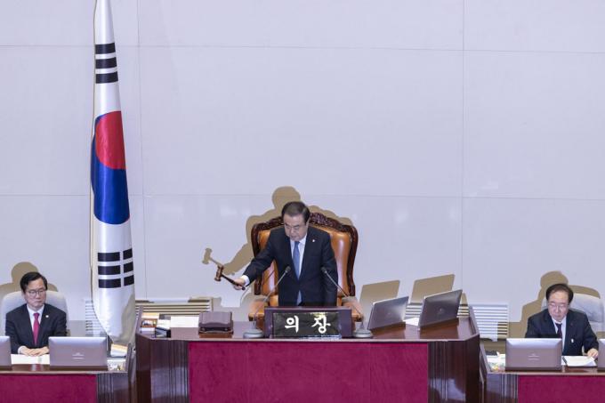 문희상 국회의장이 30일 오후 서울 여의도 국회 본회의장에서 고위공직자범죄수사처 설치 및 운영에 관한 법률안(공수처법)을 가결하고 있다.
