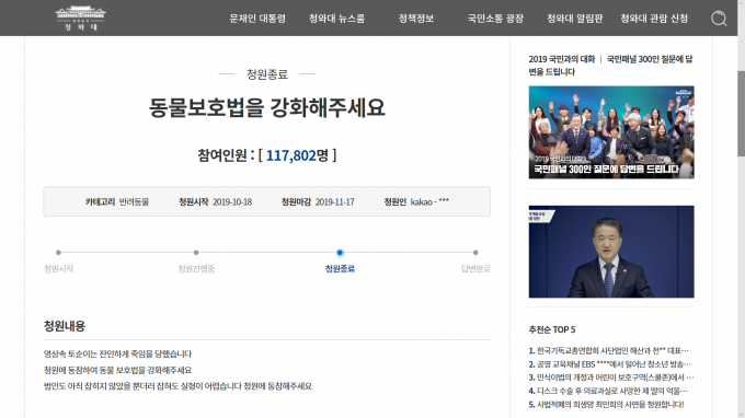 "물론, 현행 동물보호법은 너무 약합니다. 하지만, 동물학대사건이 터질 때마다 국민들의 관심이 청원 등을 통해 집중되는 것이나, 이전에는 없었던 실형선고 사례가 하나둘씩 쌓이는 것을 보면 점차 개선될 것이라고 기대합니다. 물론, 저절로 좋아지는 게 아니라, 다 함께 노력해야지요!"(망원동 주민 이은주 씨)