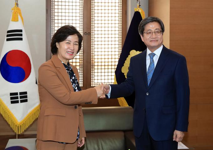 이어 "개혁에 대한 기대가 크기 때문에 김 대법원장의 족적을 남길 수 있도록 법무부가 할 수 있는 일을 다하도록 하겠다"고 했다.