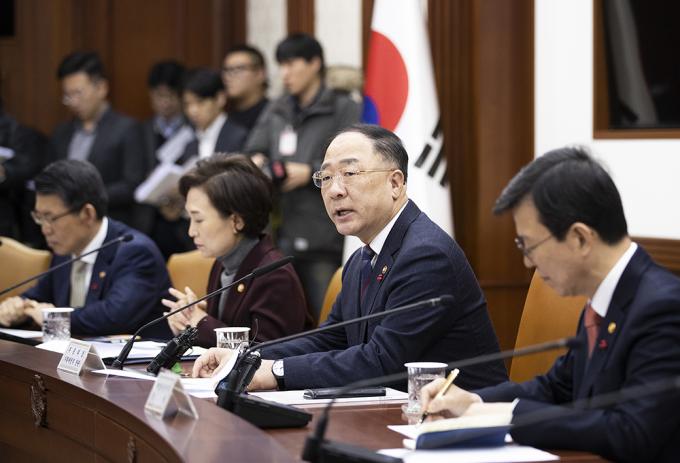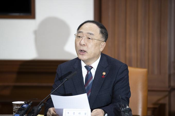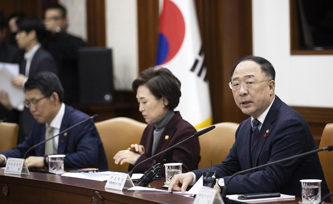 홍남기 경제부총리 겸 기획재정부 장관이 10일 오전 서울 종로구 정부서울청사에서 열린 중동상황 관련 관계장관회의에서 모두발언하고 있다.