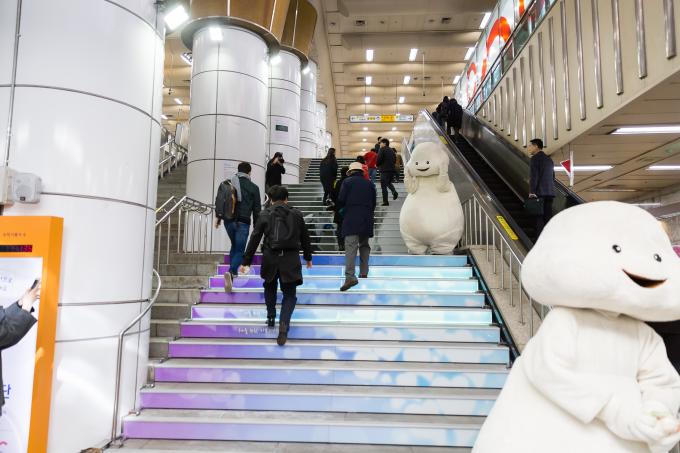 공사와 365mc병원은 2017년 3월 '아트건강기부계단'을 함께 설치했다. 강남구청역에 에스컬레이터 대신 계단을 이용하는 사람 수만큼 기부금이 쌓인다.