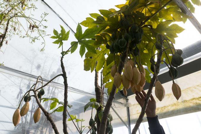 13일 경기도 안성 미라팜에서 황상열 대표가 파파야를 소개하고 있다. 미라팜은 열대 유실수를 국내 토양에 맞게 재배해 묘목을 생산하는 곳이다.