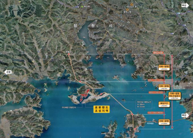 한편 지난 2008년 정부로부터 사업 승인을 받은 경남마산로봇랜드는 경남 창원시 마산합포구 구산면 일대 125만9890㎡에 7000억 원(국비 560억 원, 도비 1000억 원, 시비 1100억 원, 민자 4340억 원)을 투입, 국내 최초의 로봇복합문화 공간이다.