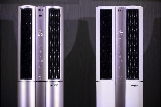 LG전자는 16일 오전 서울 강남구 디자이너클럽에서 열린 신제품발표회에서 '2020년형 LG휘센 씽큐 에어컨' 을 선보였다.
