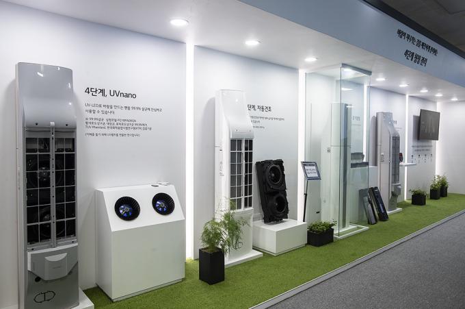 LG전자는 16일 오전 서울 강남구 디자이너클럽에서 열린 '2020년형 LG휘센 씽큐 에어컨 신제품발표회'에서 4단계 청정 관리 시스템을 공개했다.