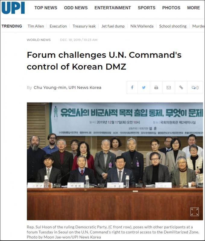 또한 한국의 DMZ를 관할하고 있는 유엔사령부는 실체가 모호하며 비군사적 목적의 민간인 출입까지 부당하게 출입을 통제하고 있다는 내용의 기사도 UPI통신을 통해 전 세계에 배포됐다.