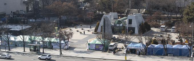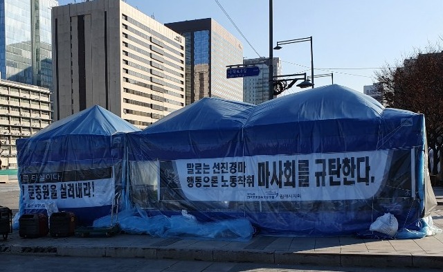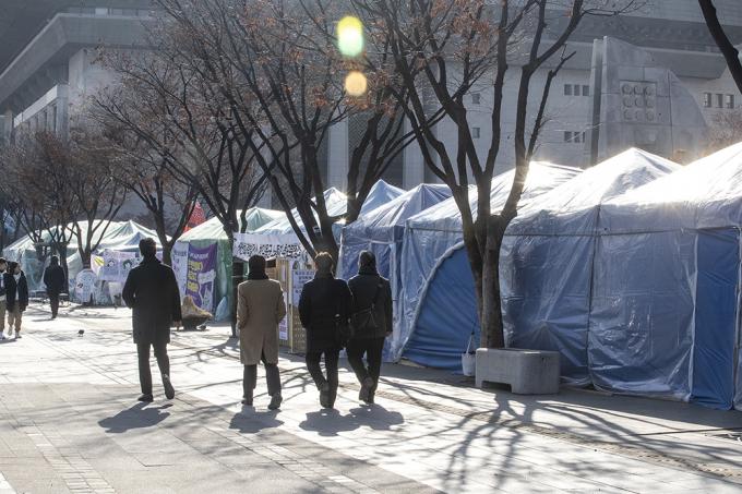 ▲ 16일 오후 서울 종로구 세종로소공원 인근에 천막농성장이 설치되어 있다. [정병혁 기자]