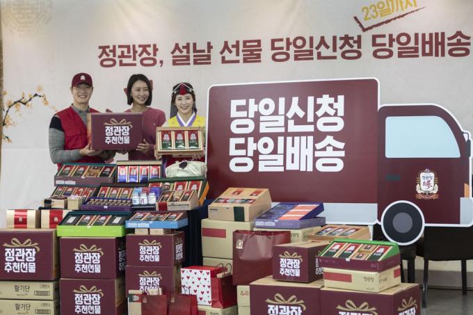 당일신청·당일배송 서비스는 설 연휴 전날인 23일까지 정관장 매장에서 배송 가능지역 여부를 확인한 후 신청가능하며 20만원 이상 구매 고객은 무료로 이용할 수 있다.