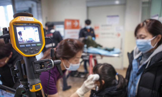 ▲ 24일 서울 중랑구 서울의료원에서 의료진이 열감시 카메라와 체온계로 환자 및 면회객의 체온을 측정하고 있다. 서울의료원은 중국 우한시에서 시작된 신종 코로나바이러스에 대응하여 원내 면회객 관리를 메르스 수준으로 강화한다고 밝혔다. [서울의료원 제공]