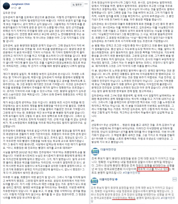 ▲ 진중권 전 동양대 교수가 30일 김두관 더불어민주당 의원에 대한 글을 페이스북에 올렸다. [진중권 페이스북 캡처]