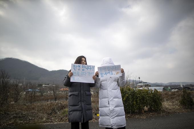 이들은 "이날 입소하는 교민들이 이곳에서 안정적으로 지내다 돌아가길 바란다"며 반대 현수막도 모두 철거했다.