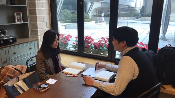 ▲ 4일 오후 강남의 한 카페에서 양육비해결총연합회 이영 대표(왼쪽)가 UPI뉴스 김형환 기자와 인터뷰하고 있다. [양동훈 인턴기자]