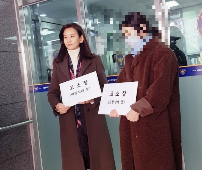 ▲ 3일 오후, 동대문경찰서에서 양육비해결총연합회 이영 대표(왼쪽)와 피해자 A 씨가 고소장을 제출하고 있다. [이영 제공]