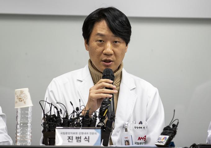 ▲ 진범식 국립중앙의료원 감염내과 전문의가 5일 오후 서울 중구 국립중앙의료원에서 열린 신종 코로나바이러스 감염증 2번 확진자 퇴원 및 13번 환자 임상 경과 관련 기자회견에서 발언을 하고 있다. [정병혁 기자]