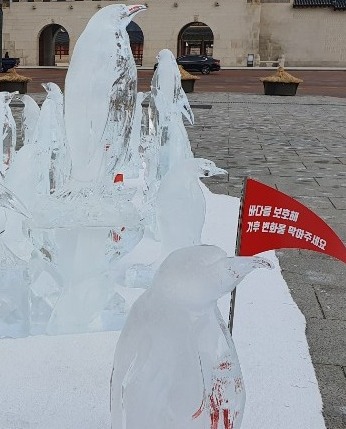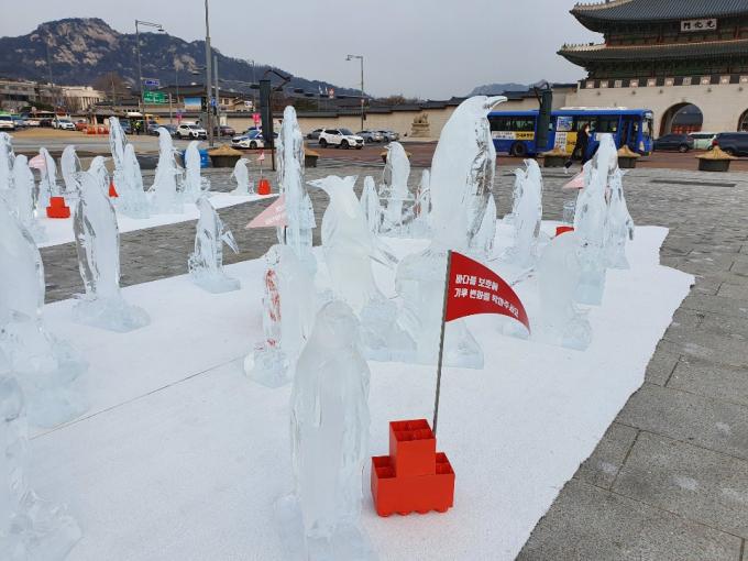 광화문 광장에 펭귄 얼음 조각상이 등장했다. 단순히 겨울철을 맞아 진행하는 행사라고 생각하기 쉽다. 그러나 이 펭귄들, 할 말이 많아 보인다.