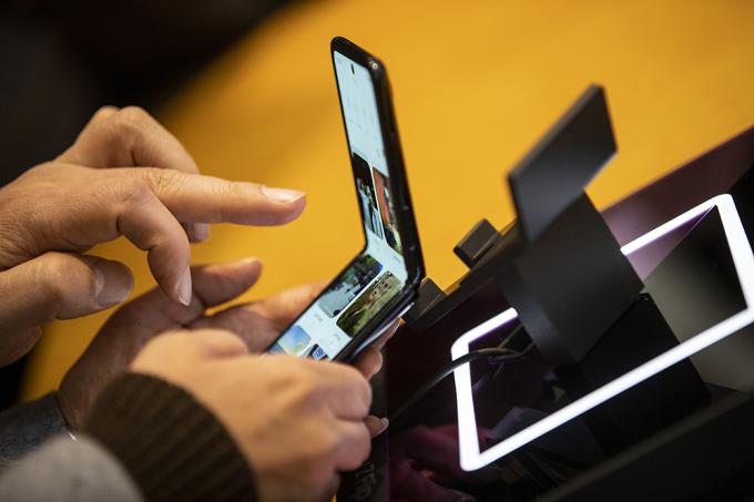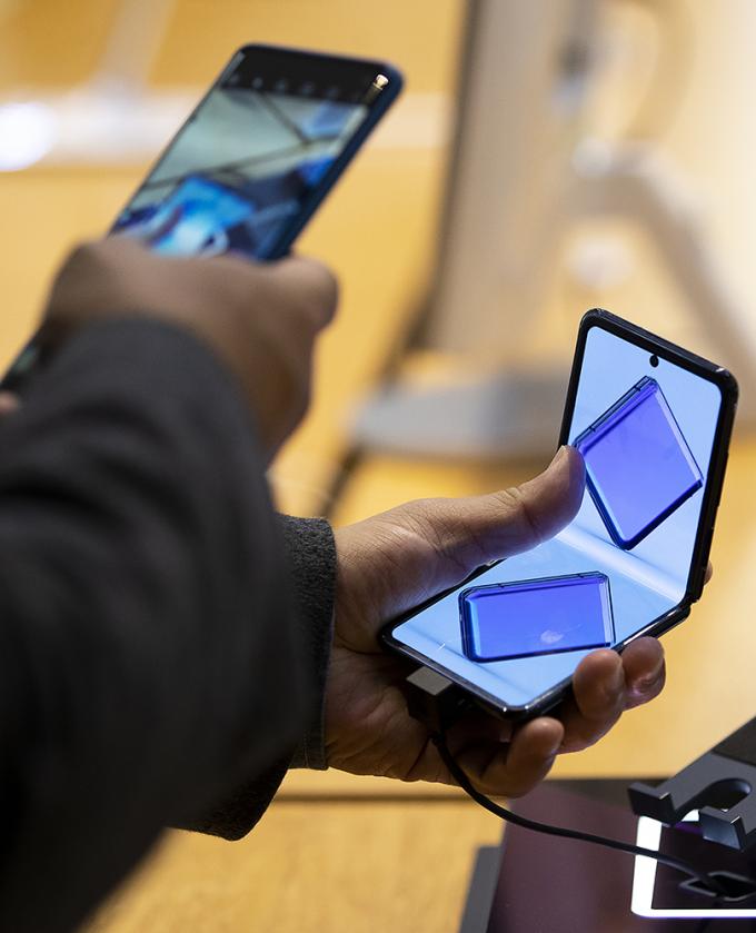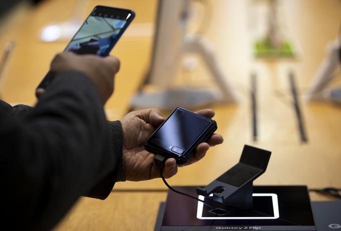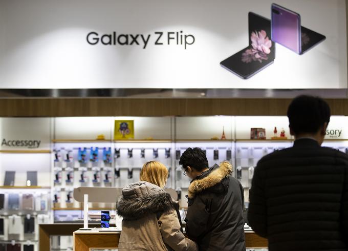 13일 오후 서울 서초구 삼성전자 딜라이트샵을 찾은 시민들이 삼성전자의 두 번째 폴더블폰인 갤럭시 Z 플립을 살펴보고 있다. 갤럭시 Z 플립은 14일부터 전 세계 시장에 순차적으로 출시될 예정이다.