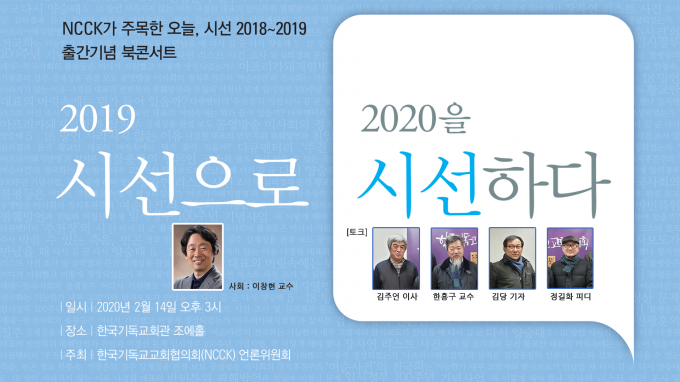 한국기독교교회협의회(NCCK) 언론위원회가 주최한 북콘서트 '2019 시선으로 2020을 시선하다'가 14일 오후 3시 서울 종로구 한국기독교회관에서 열렸다.