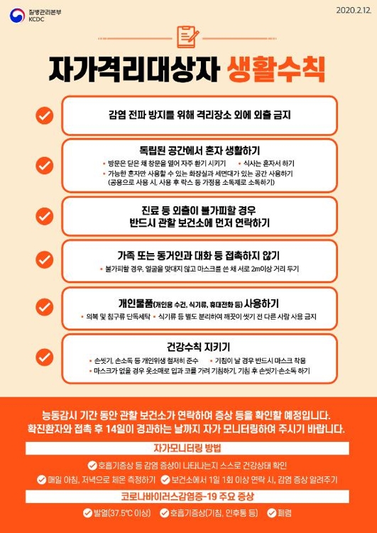 ▲ 자가격리 대상자 생활수칙 [중앙방역대책본부 제공]