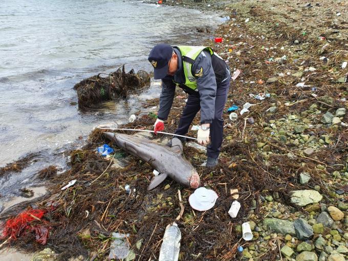 신고를 받은 해경은 순찰팀을 현장에 보내 확인한 결과 길이 190cm, 둘레 90cm, 무게 약 60kg 정도의 상괭이로 확인됐으며, 상괭이 머리 부분에서 부패가 진행돼 죽은 지 며칠 지난 것으로 추정됐다.