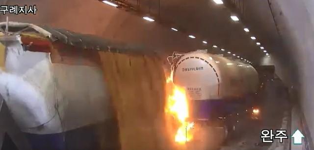 충돌 직후 질산을 실은 탱크로리 차량에 붙은 불이 다른 차량으로 번지며 많은 사상자가 발생했다.