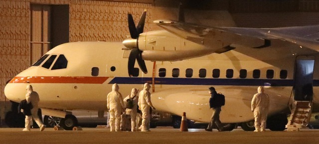 ▲ 신종 코로나바이러스 감염증(코로나19) 발병으로 크루즈선 '다이아몬드 프린세스'호에 격리되어 있던 교민이 19일 오전 서울 강서구 김포국제공항에 도착한 대통령 전용기(공군3호기)에서 내리고 있다. [뉴시스]